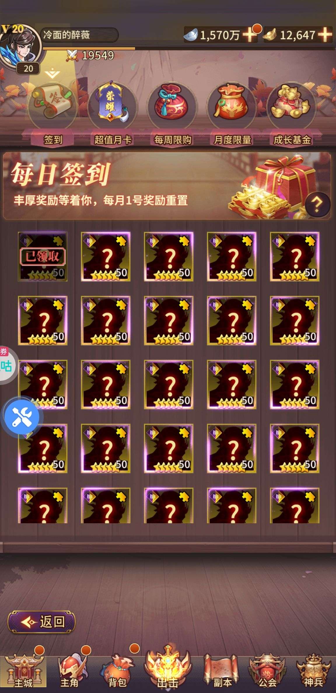 点将令*20, 神铁*3000, 紫精印*6(每个账号限领一次)