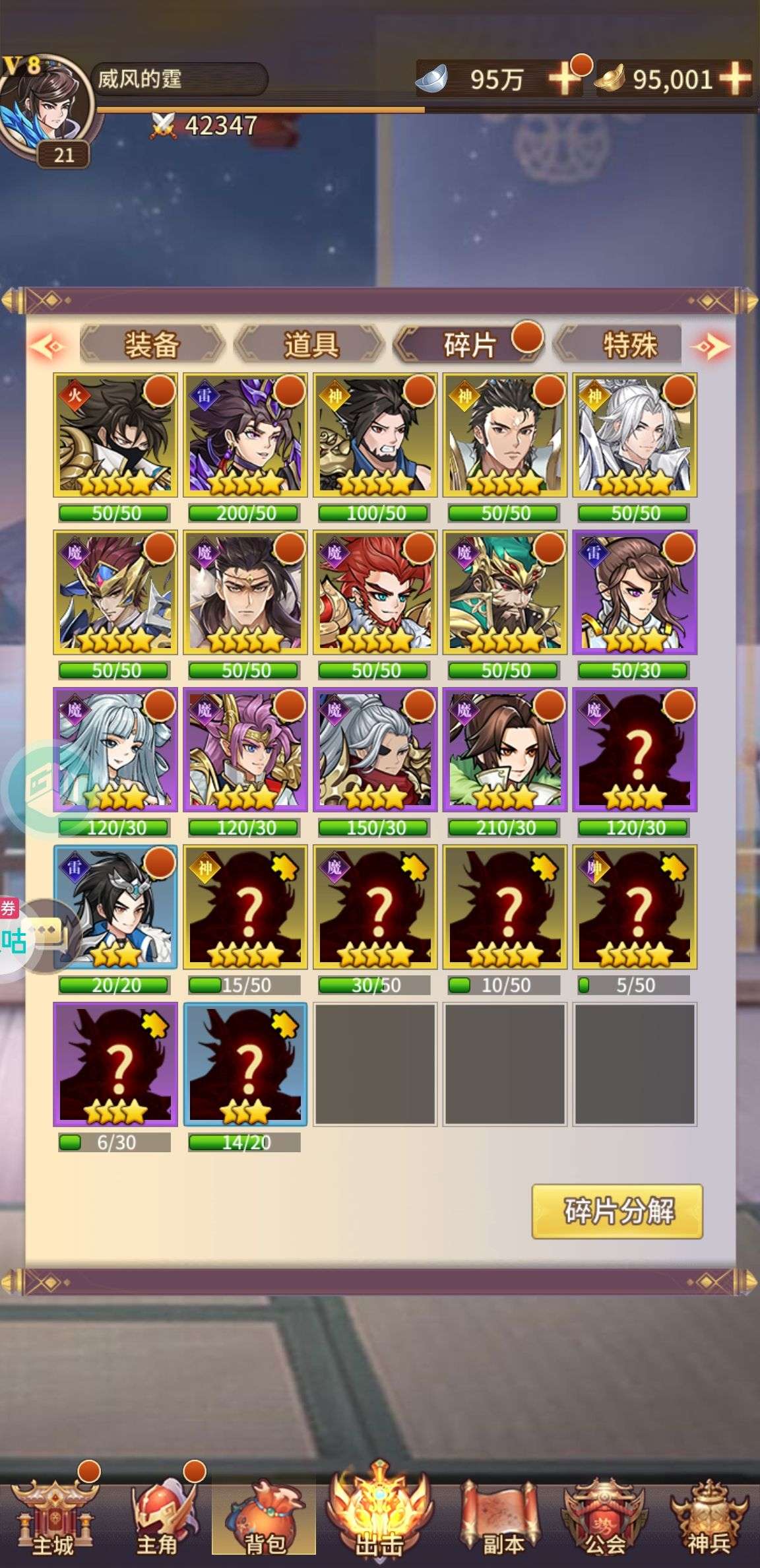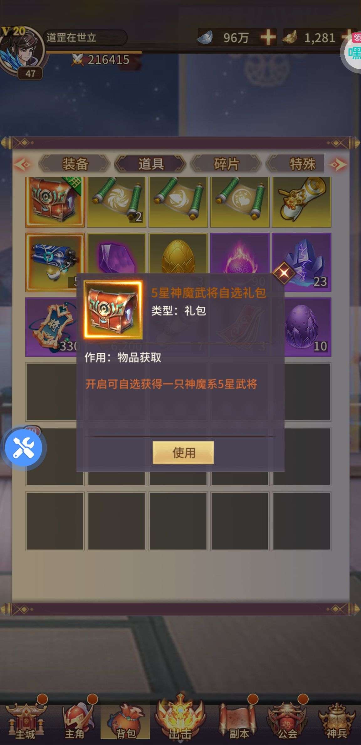 神阶灵蛋*5,5星神魔碎片*100,公会贡献*50000,进阶石*5000(每个账号限领一次)