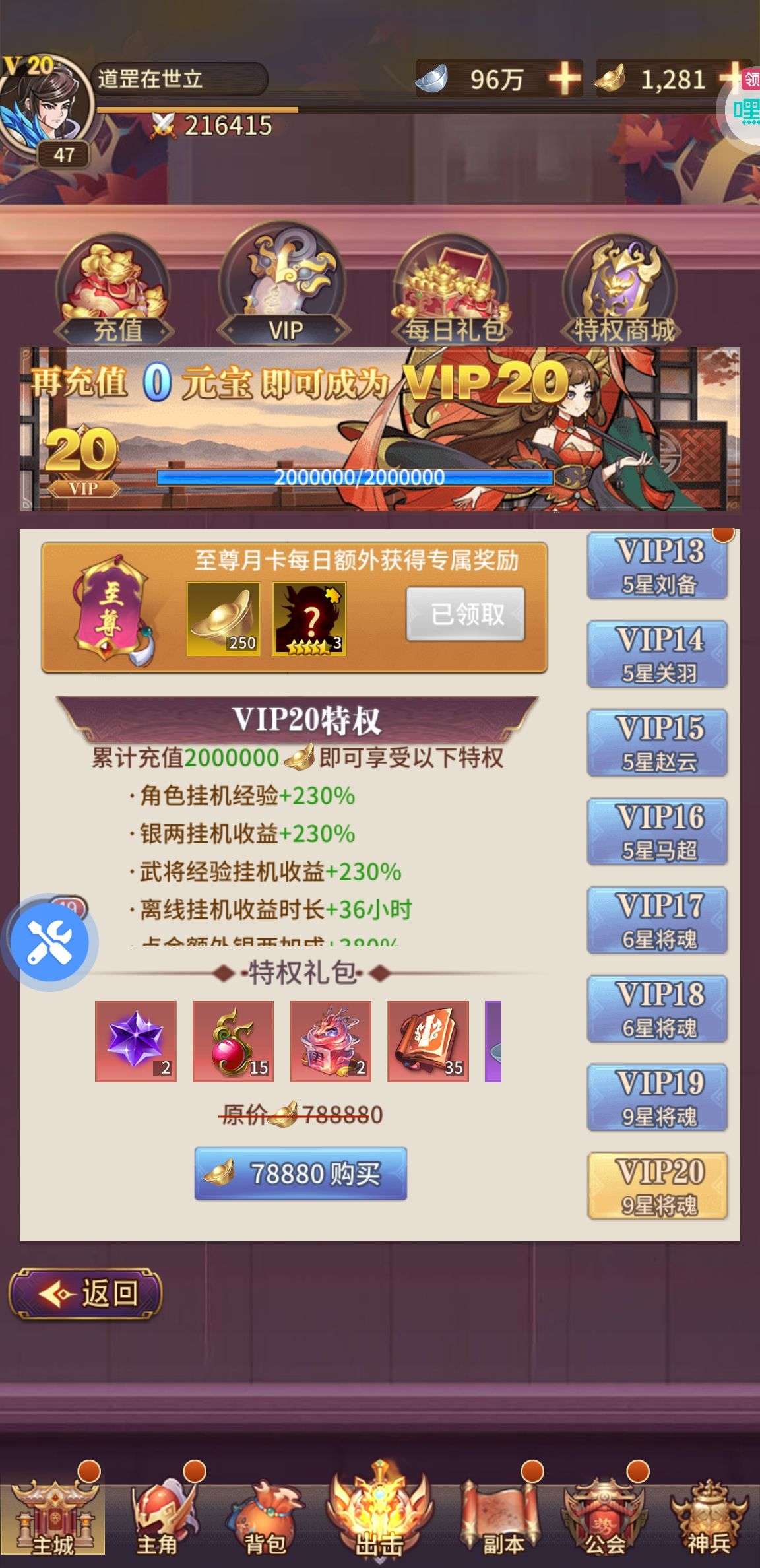 单日累充20000元礼包(折前)