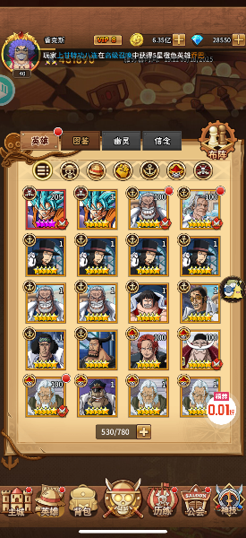 前面1~2个月,最好留下两千代金券去买黑卡,68~648的礼包最划算,这是抽取传说人物的必要条件,建议囤下来1200张之后还是抽卡 抽卡英雄推荐 索隆(和之国)主打伤害 金鱼姬  辅助 大和 输出 平民阵容推荐 海贼艾斯 战国 鹤(前期过度,后期放二队) 悟空(限时秒杀可获取) 大和(前期有活动,免费领取)