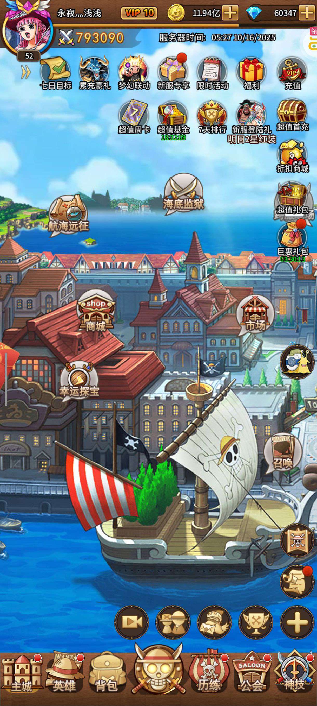 《海洋王国》0.1折IP联动免费版,每天送3000元平台代金券!梦幻联动经典突破!民工漫IP大集结,海贼与龙珠火影联动,更有充值永久0.1折!路飞携手悟空和鸣人,一起寻找伙伴共闯新世界。好激动哦,下个联动人物是谁呢?