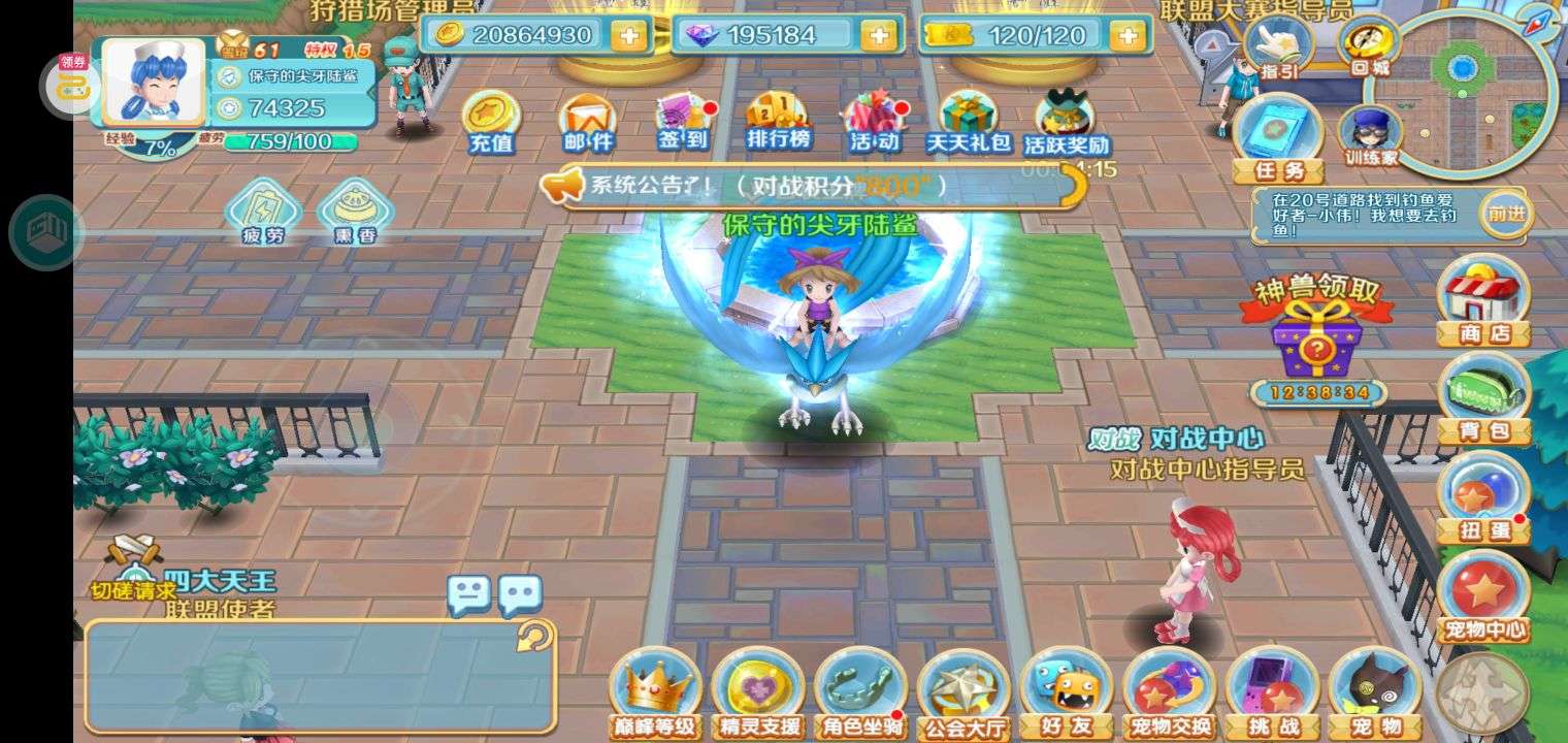 大家可以从这里来捕捉稀有精灵,每日的精灵都不一样,可以从这里捕捉噩梦神,和活动送的超梦。零氪玩家可以直接进新区一个人,就可以领到区第一的福利,日积月累成为大