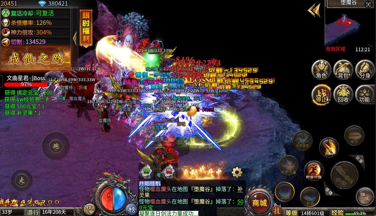充值比例1元:10000灵石 ★上线福利★ 每日赠送188代币,送自动回收 自动拾取 自动挂机 ★白嫖赞助★ 顶级赞助,杀怪即可白嫖到手 ★天地奇珍★ 打怪几率掉落各种奇珍,使用后可获得属性加成" ★后缀说明:送自动回收 全屏拾取 身外化身