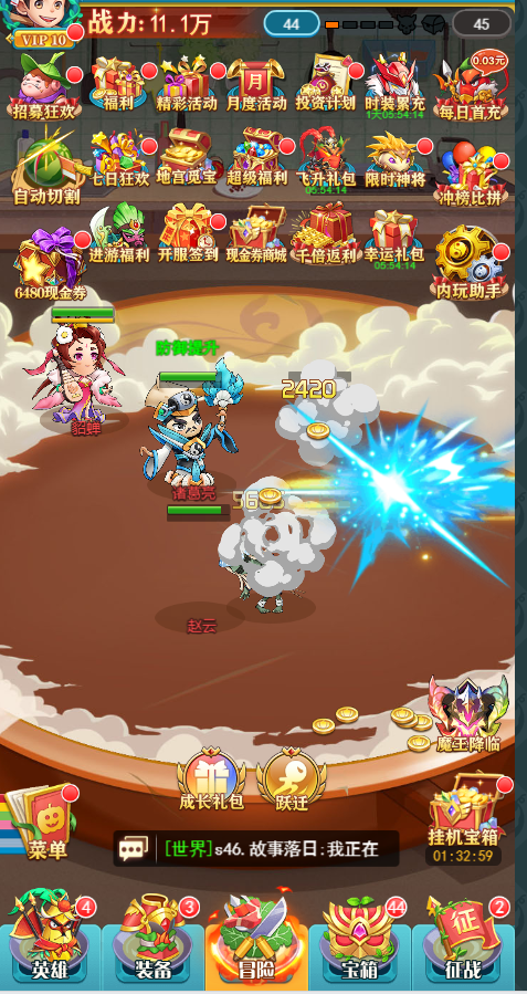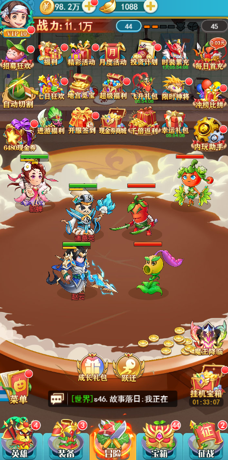 充值比例1元:10元宝 ★【食神0.05折神价】趣味卡牌开箱终身0.05折,首充6元仅0.03元秒进,一杯豆浆钱开局!! ★【每日6480现金劵】进游先领1000现金劵,直升VIP特权,每日最高领6480现金劵! ★【满星SS神将关羽】新服狂欢送满星 SS 红将关羽,1000W 战力碾压 BOSS,开局即巅峰! ★【终身百万充值】累计登录领 100 万充值卡!SSR 英雄、顶级厨具全靠送,零氪毕业! ★【养老内玩助手】全新内玩破解助手,破境飞升特权养老,新服资源秒抢,佛系党也能制霸! ★【新服登录豪礼】新服登录送顶级SSS英雄,超级巅峰阵容一键成型,新手村直接起飞! ★【全新英雄 UP】时空 SSS 英雄来袭,花式搭配不重样,策略脑洞无限开! ★后缀福利说明:0.05折每日登录累积送6480代金券,可拆分使用,无任何限制!