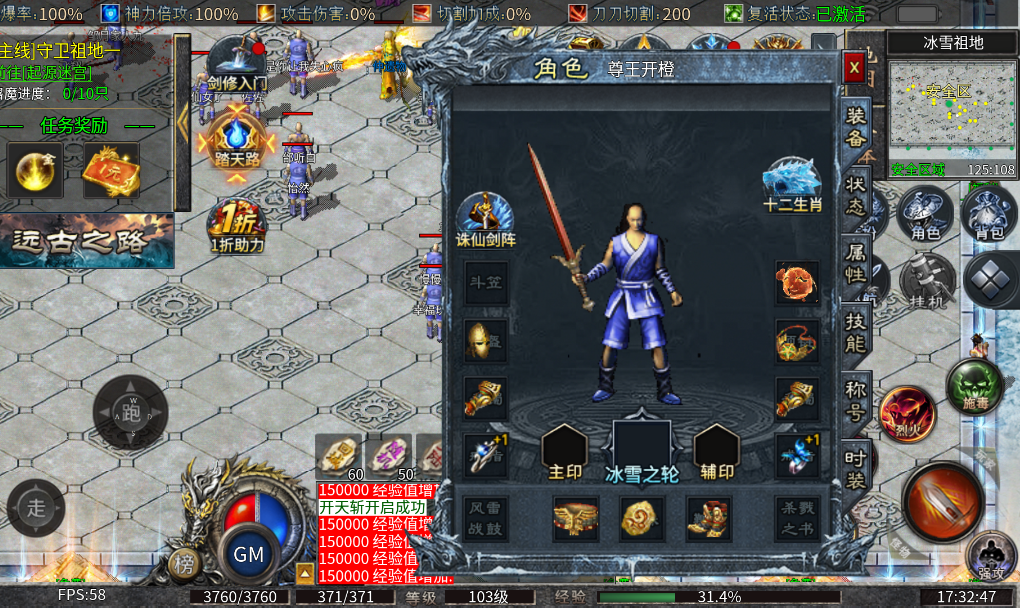 充值比例1元:1游戏货币 ★散人福利:超多福利扶持、助力新人丝滑起步 ★上线送:自动回收、自动拾取、施毒术、逐日剑法、开天斩 ★想致富杀妖兽、金币保值、元宝保值、装备保值、大量实物等您回收!!
