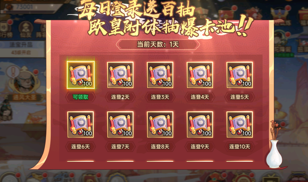 1、每日登陆领百抽
