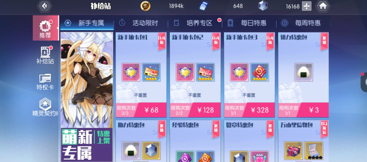 把新手抽卡包中的1和2全部买完