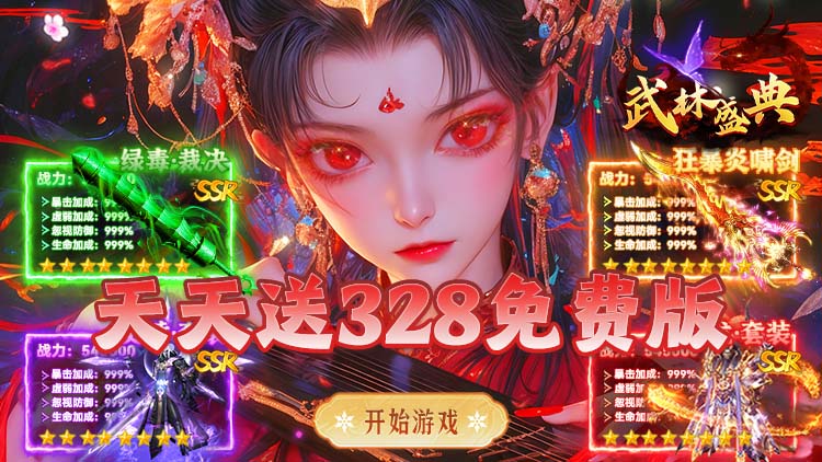 游戏介绍: 《武林盛典》是一款185单职业经典传奇,游戏内置3折充值系统,每天登录游戏即可免费领取328代币,游戏版本完美融入了冰雪,神器,专属,迷失等玩法,满足你想要的一切需求,装备全靠爆,货币全靠打。真正为散人玩家所打造,请上服耐心体验,保证您不虚此行! 上线福利: 充值比例1元:50点券★【免费代币】每天登录领取328代币,可囤可拆分★【开局福利】开局送特色四格装备,打怪效率拉满★【免费首充】代币充值免费领取3档首充值豪礼★【点券福利】每日上线,装备首曝领取大量充值点券★【散人天堂】独家特色玩法,上线满攻速,爆率全开★【三折福利】永久内置3折福利★【后缀说明】每天登录免费领取328代币 ★线下返利,元宝拿到手软。