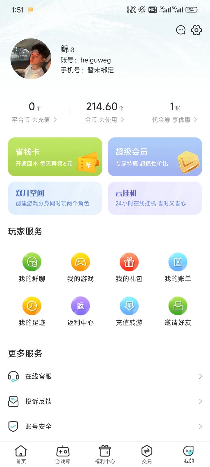 超值捡漏账号限时0.5折出售中