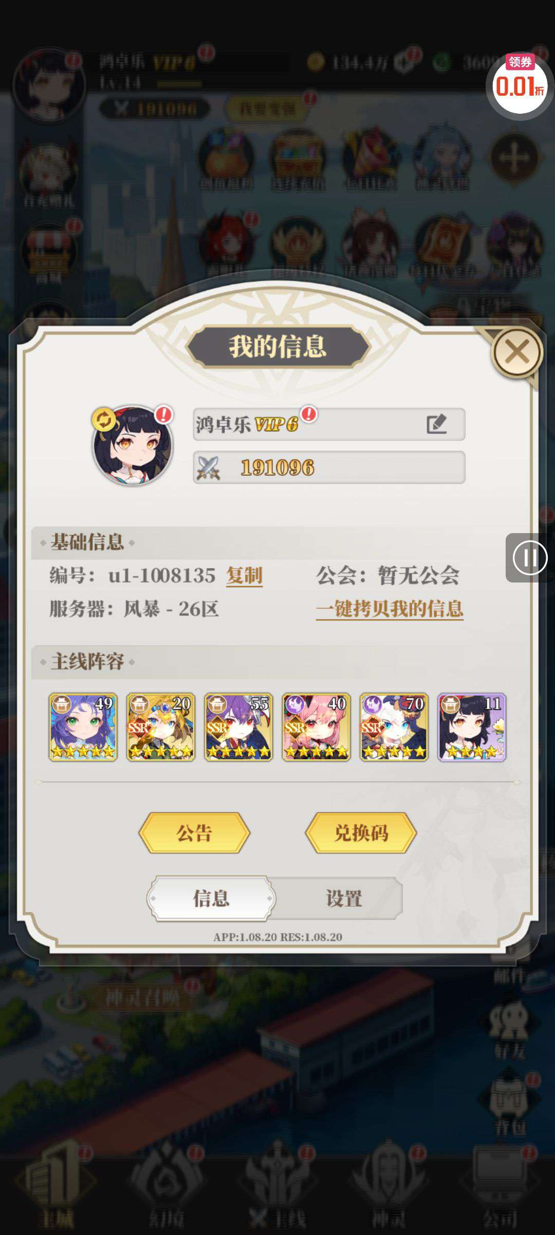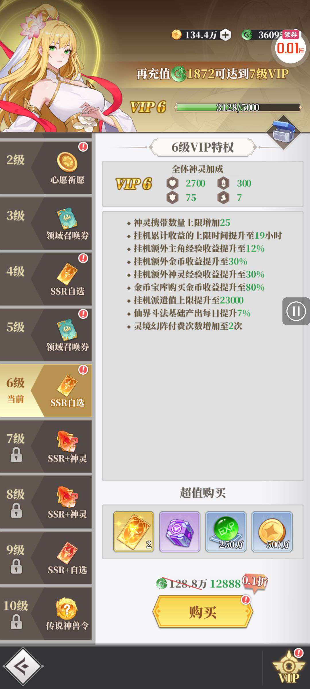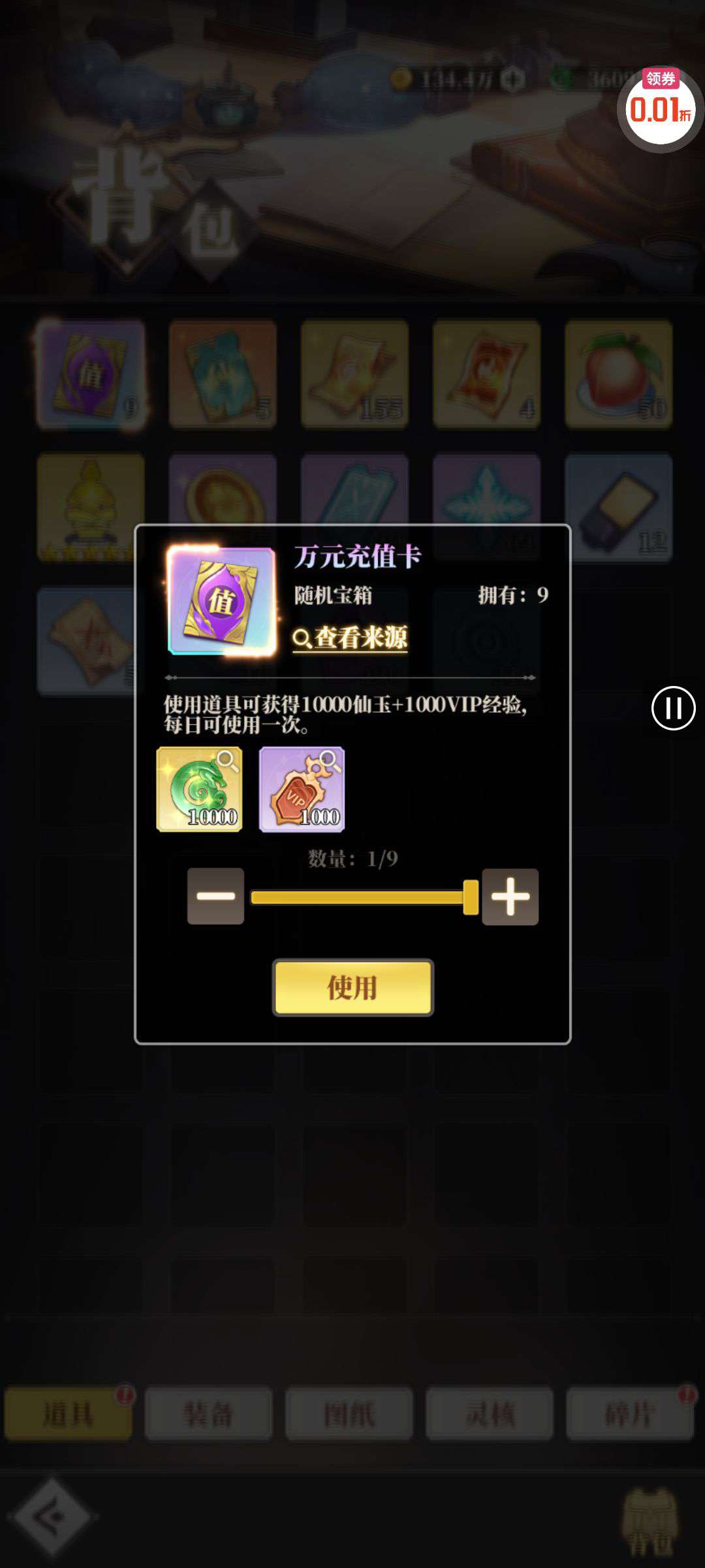 vip6了,背包有万充卡 还有100连抽的劵