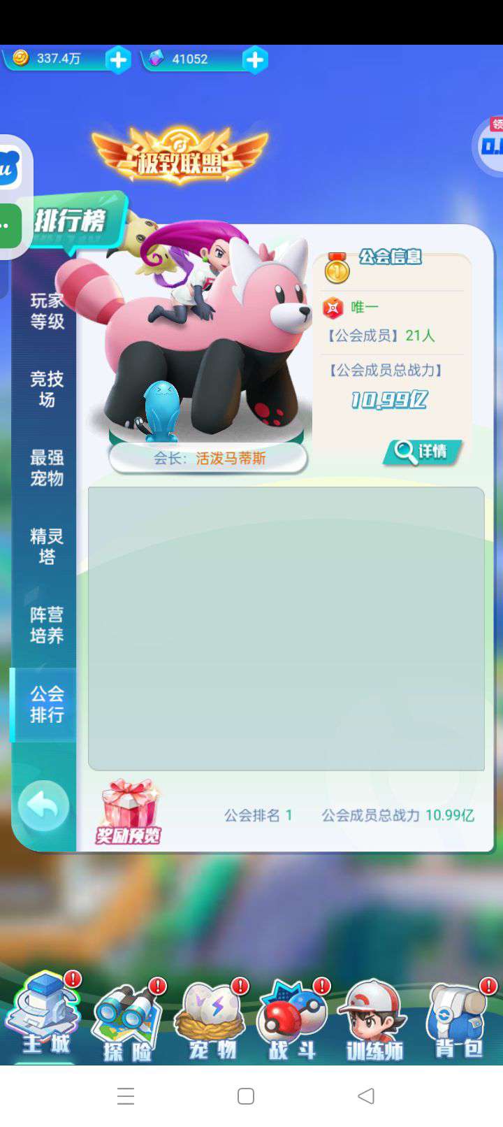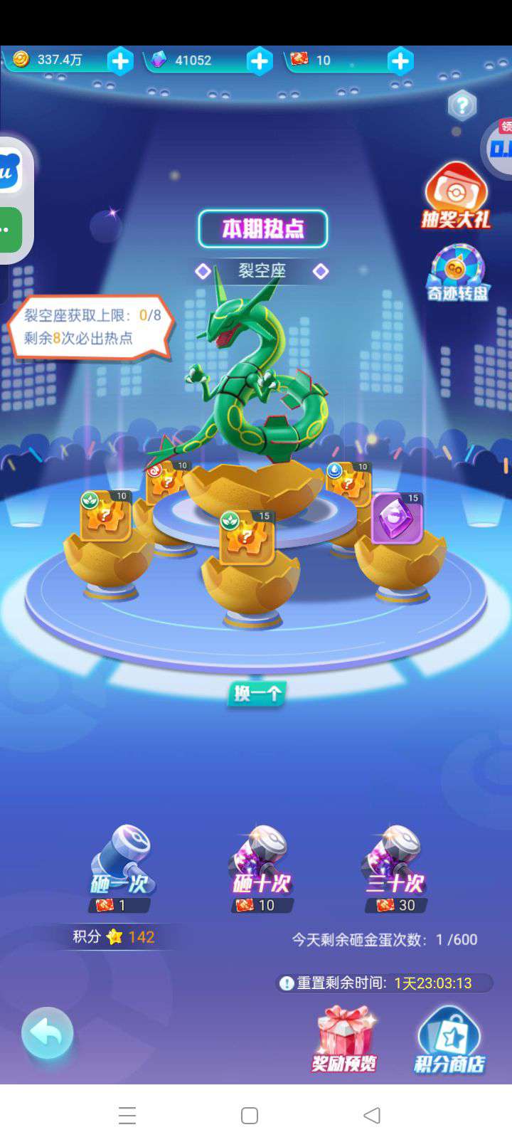 裂空座一星彩、可达鸭三星红、二十抽扭蛋券、竞技场币十四万、南国贝壳三万、公会排名本服第一