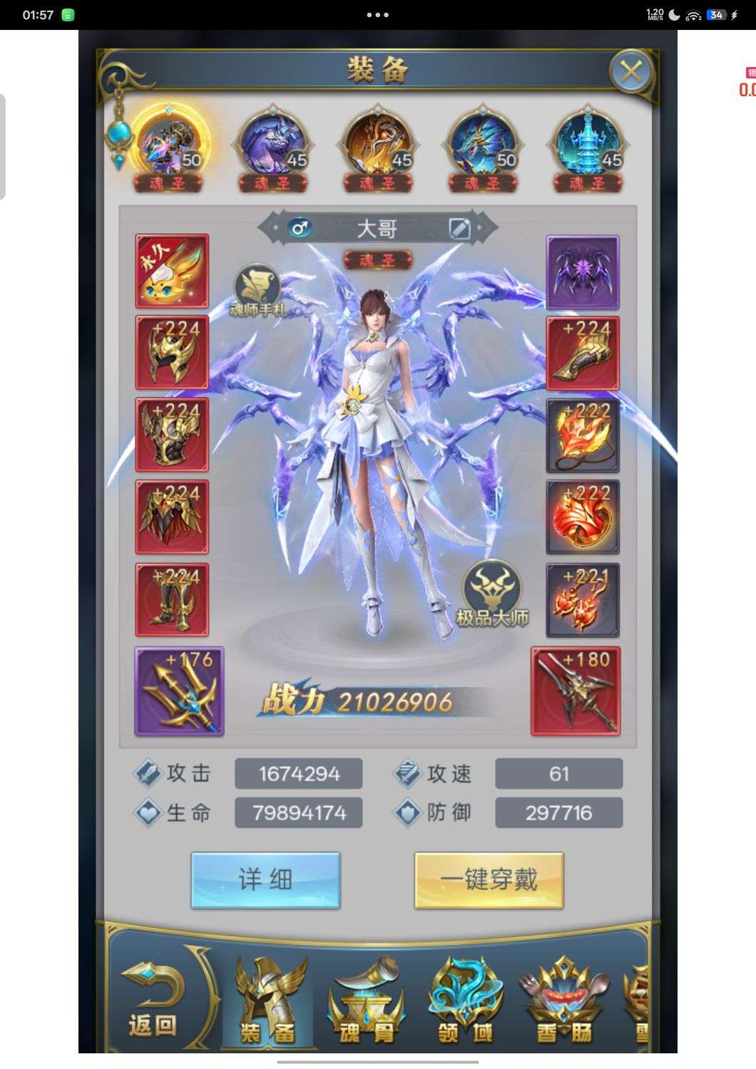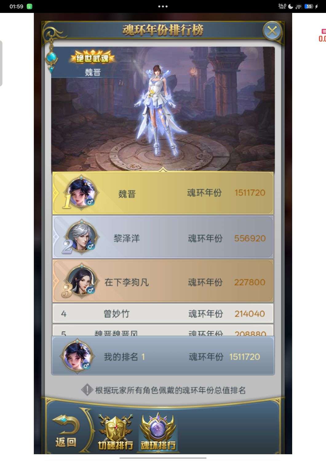 魂圣,目前榜一,开服活动基本买满,4000多万战力断档领先