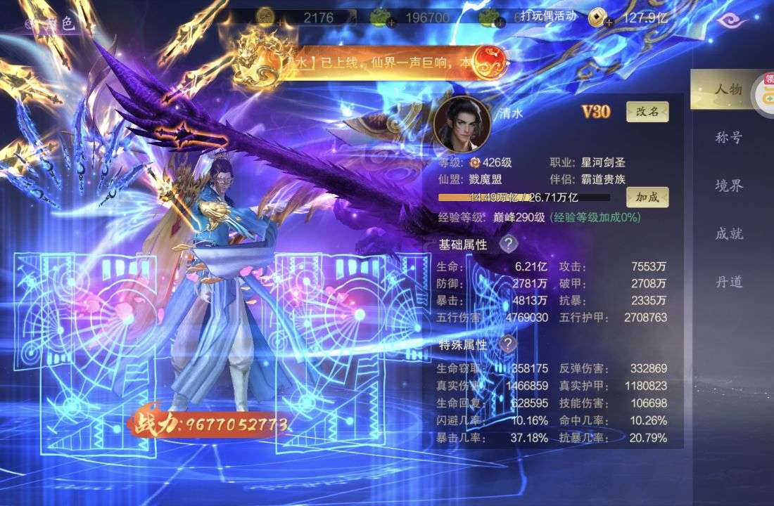 该角色累计充值7830.23元,购买后不能再次交易,不支持转区,可以回收,回收金额仅计算该小号购买后的充值金额,不计算原有充值金额(如有其他游戏官方福利号需求请联系官方客服)