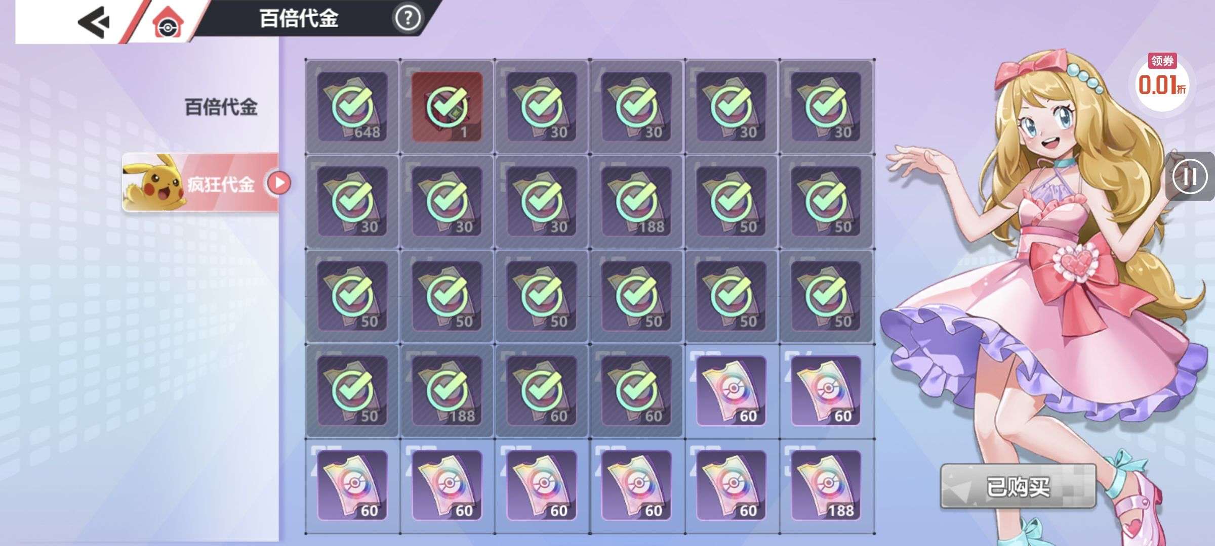 超值捡漏账号限时0.5折出售中
