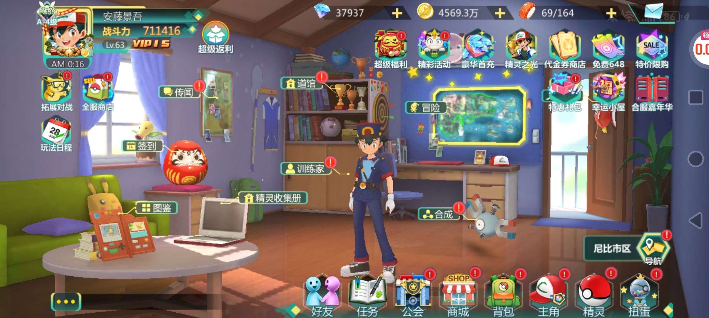 63级,有闪光神兽十几只,100多破碎石