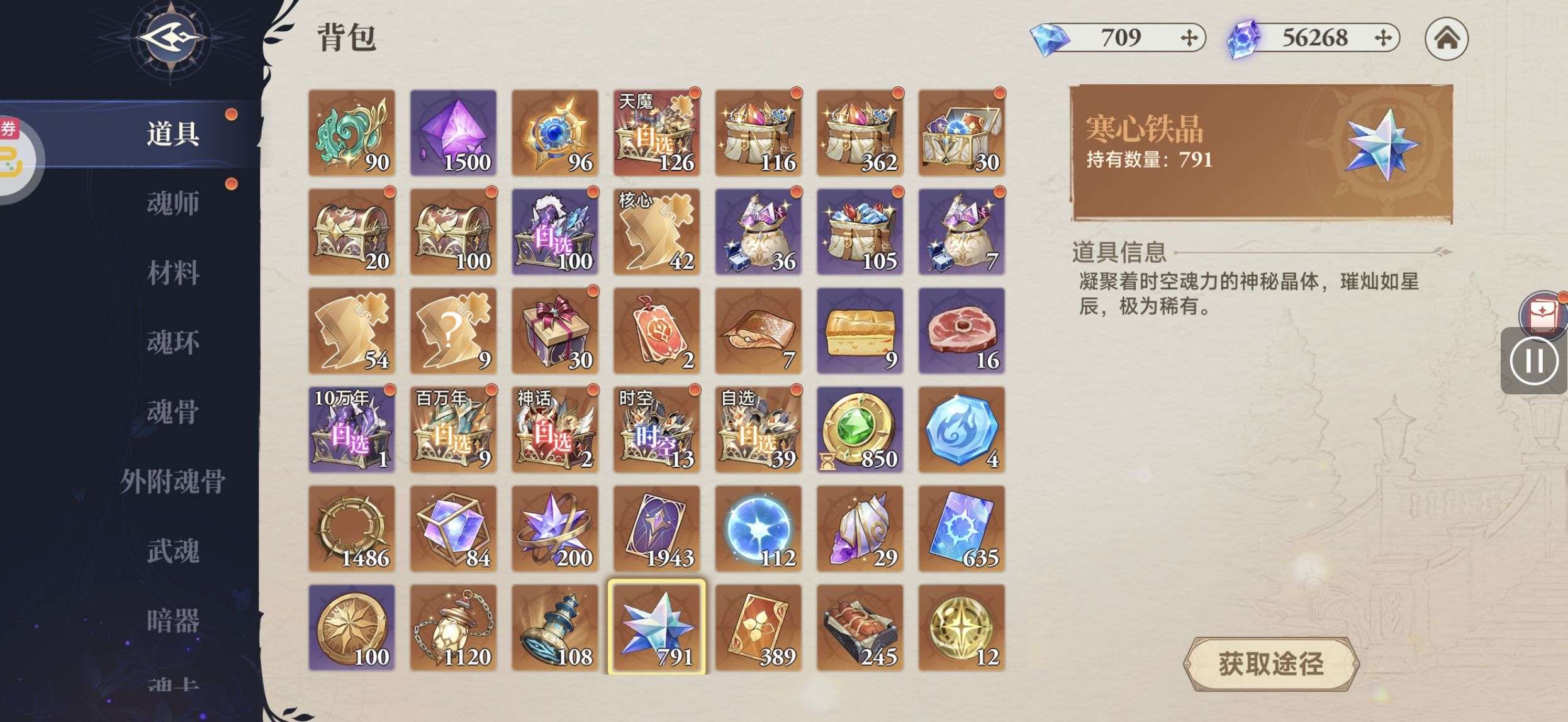 资源还有很多,寒心铁晶还有790个后面洪荒随便抽