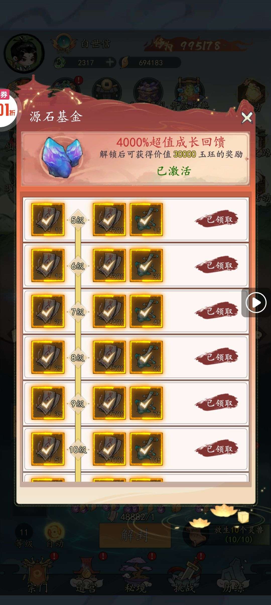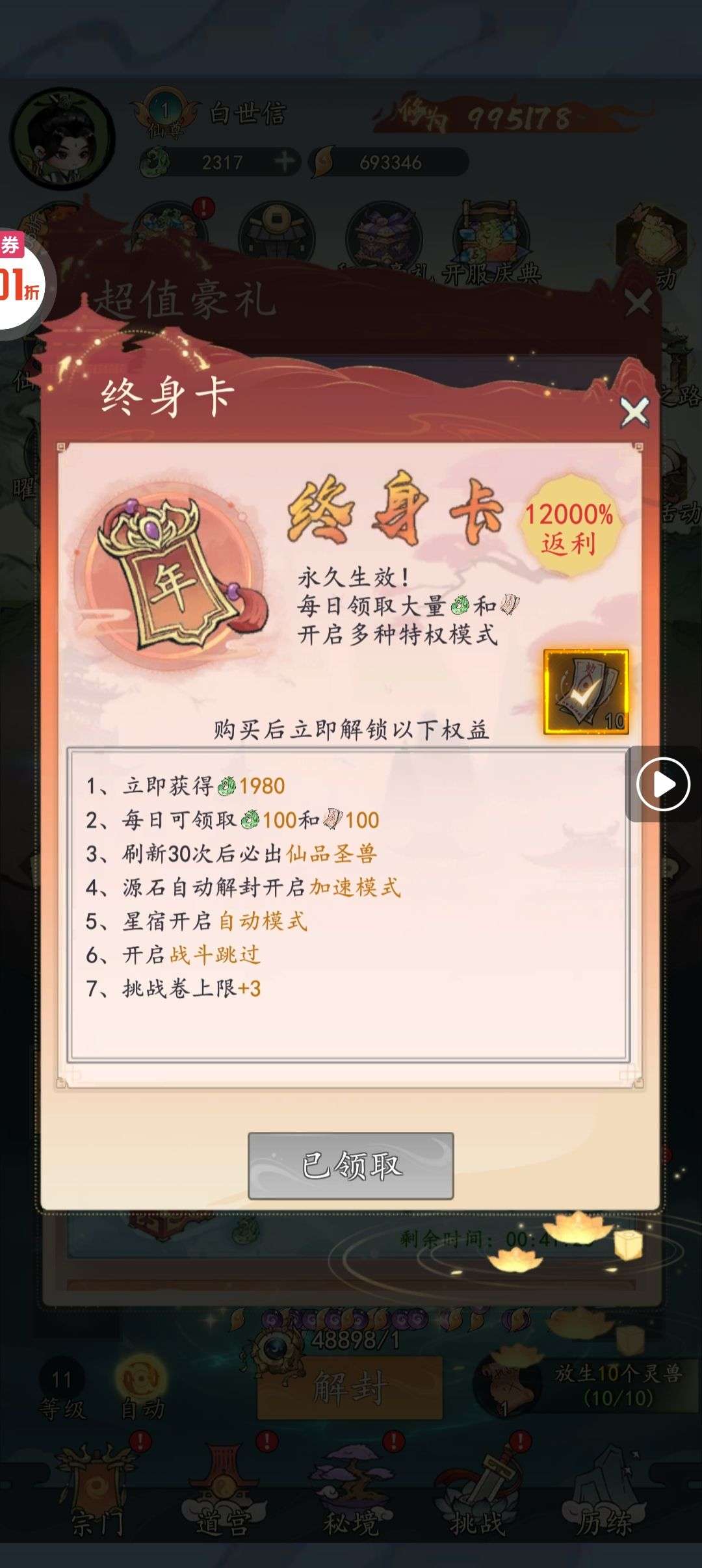 养成 开箱 修仙 · 0.05折仙兽伴行