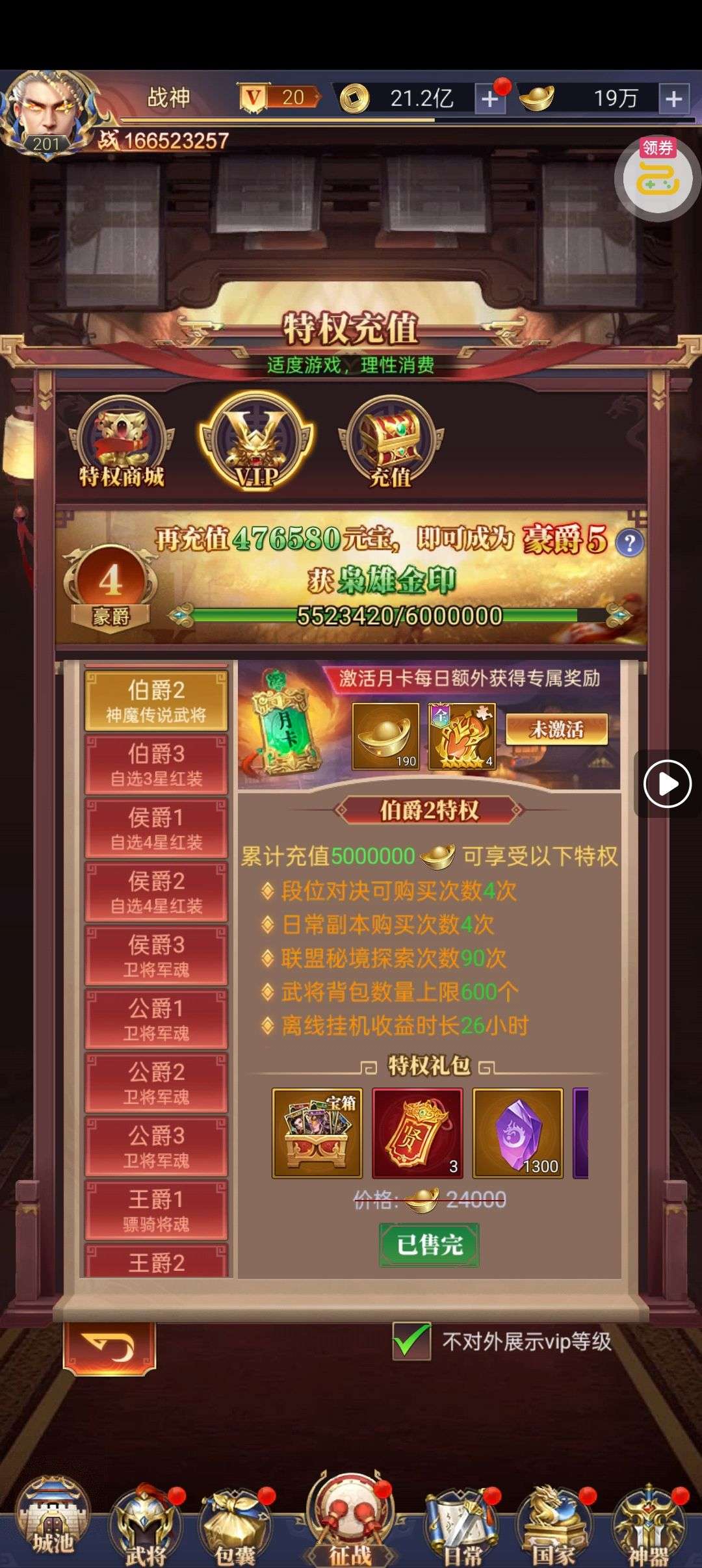 该角色累计充值5220.94元,购买后不能再次交易,不支持转区,可以回收,但回收回收金额仅计算该小号购买后的充值金额,不计算原有充值价值(如有舒其他游戏官方福利号需求请联系客服)
