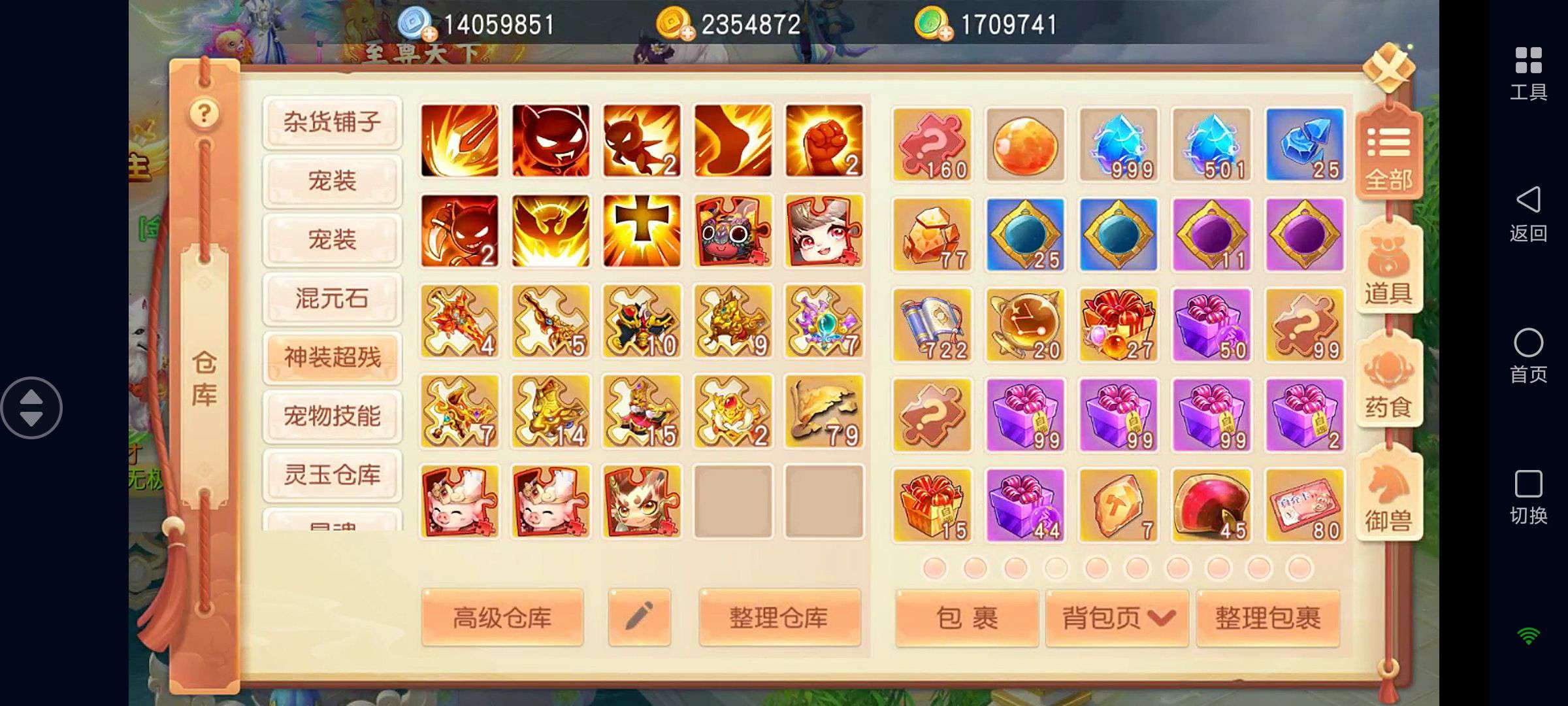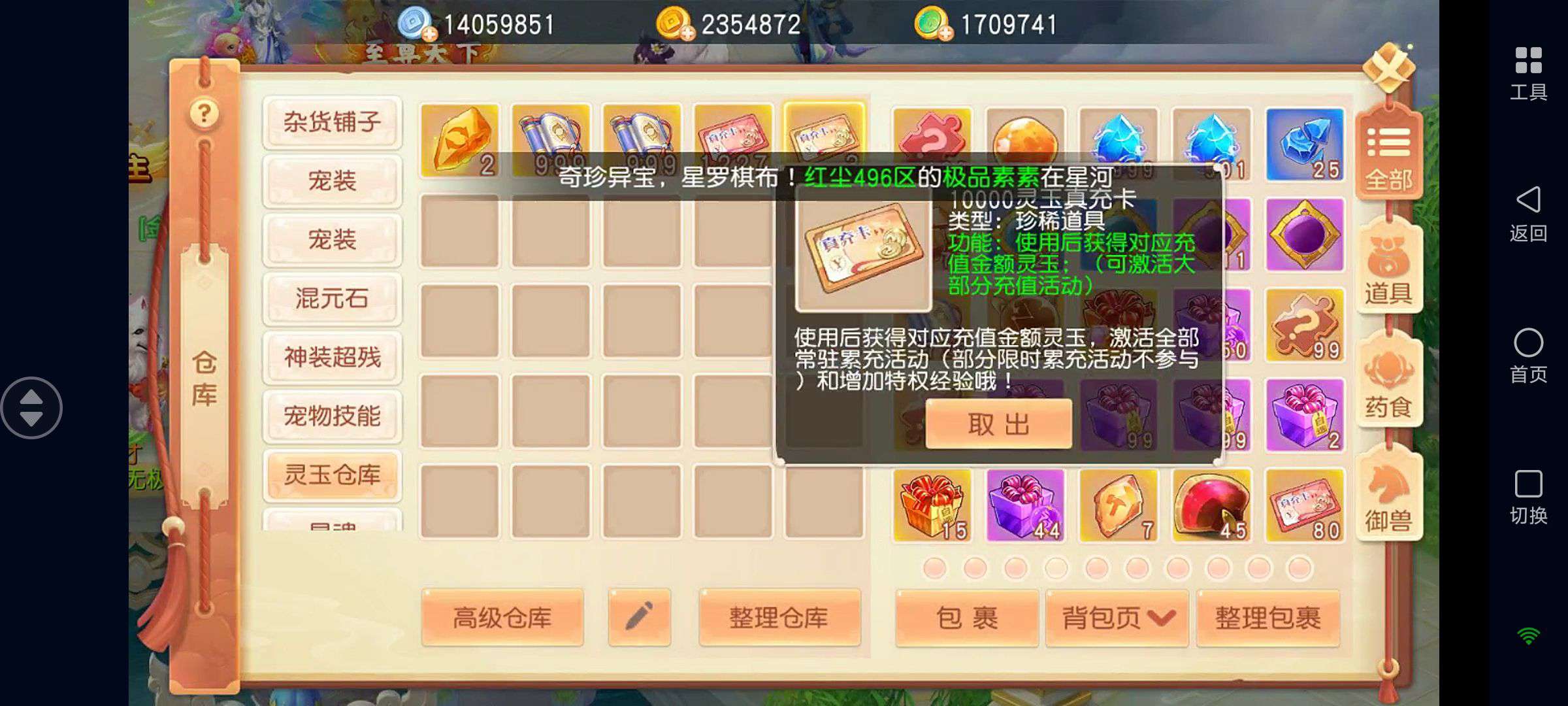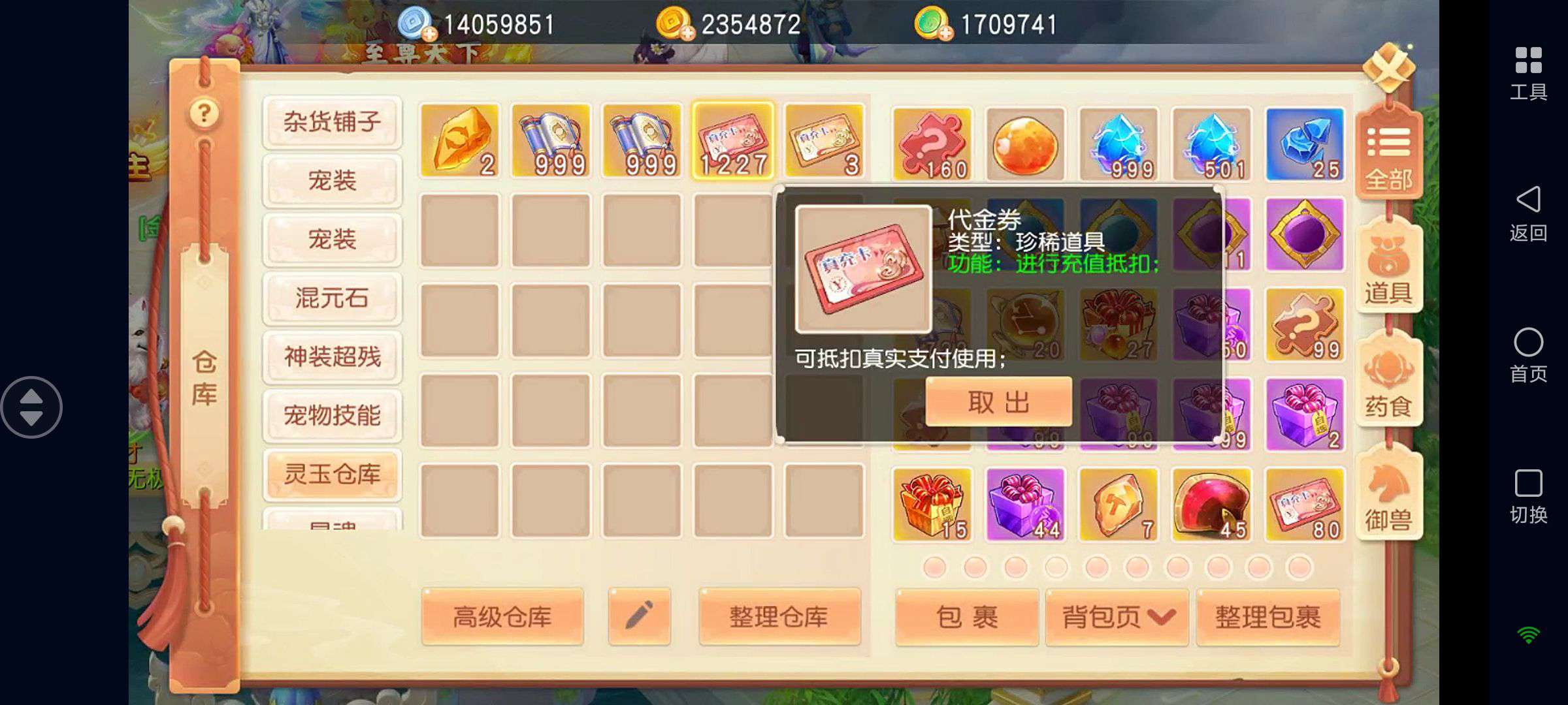 如图!从开区开始每天日常和活动一次没落过,全程跟节奏,名列前茅!装备也是全灵兽增伤特效,代金券还有1000+,其他仓库也基本满的!