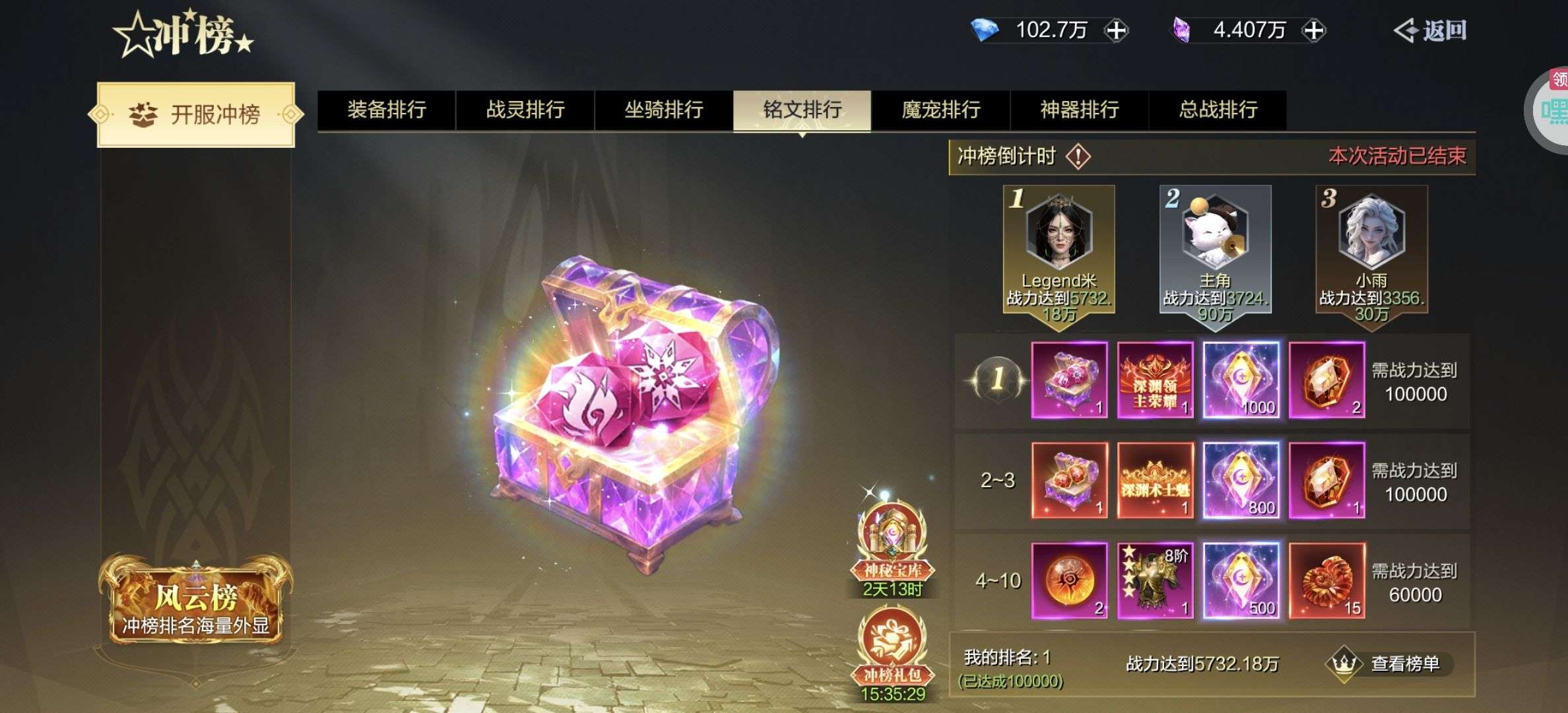 开服全是榜一,钻石也有,背包里面还有很多箱子也没开,赞助已开,绝对超值