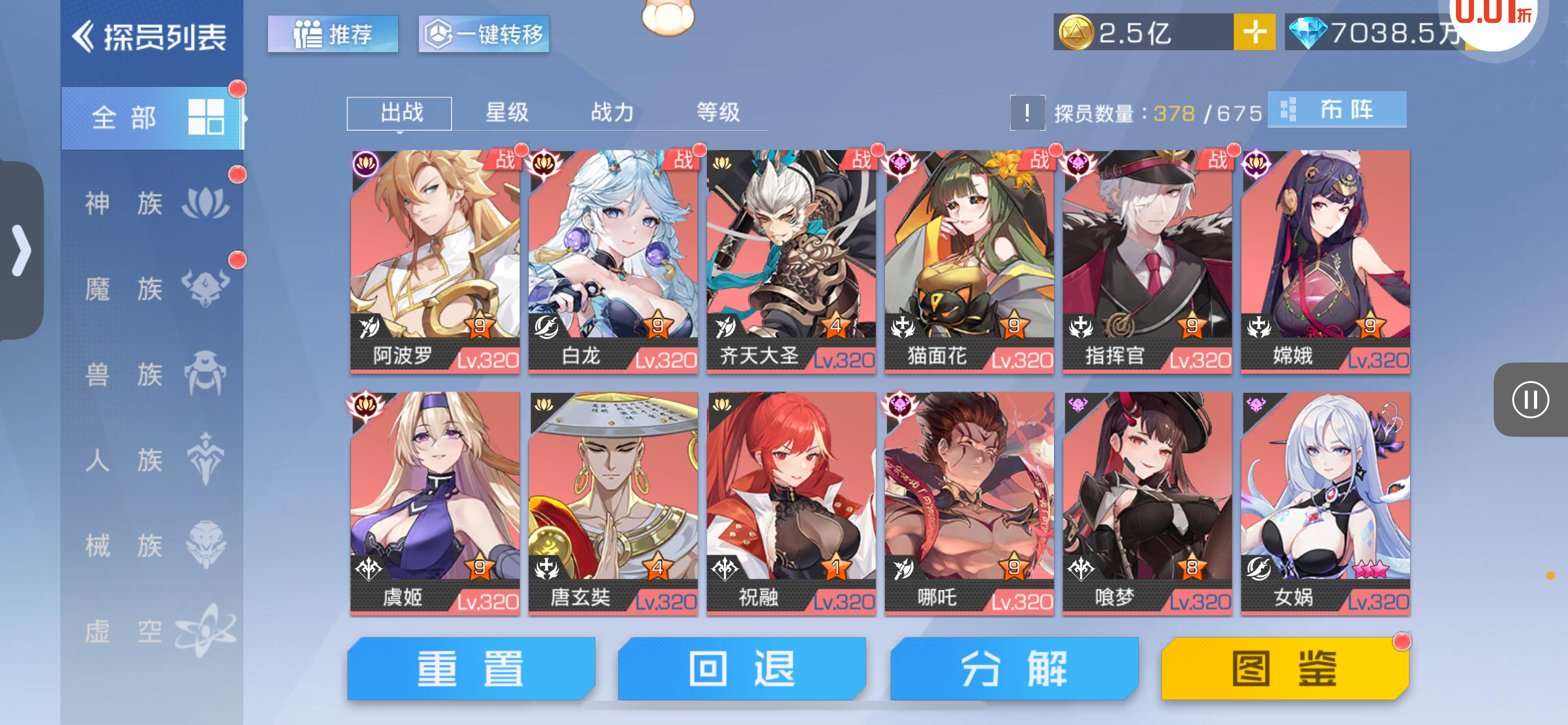 开服两个星期多 战力高 上限高 英雄很多 可以转行