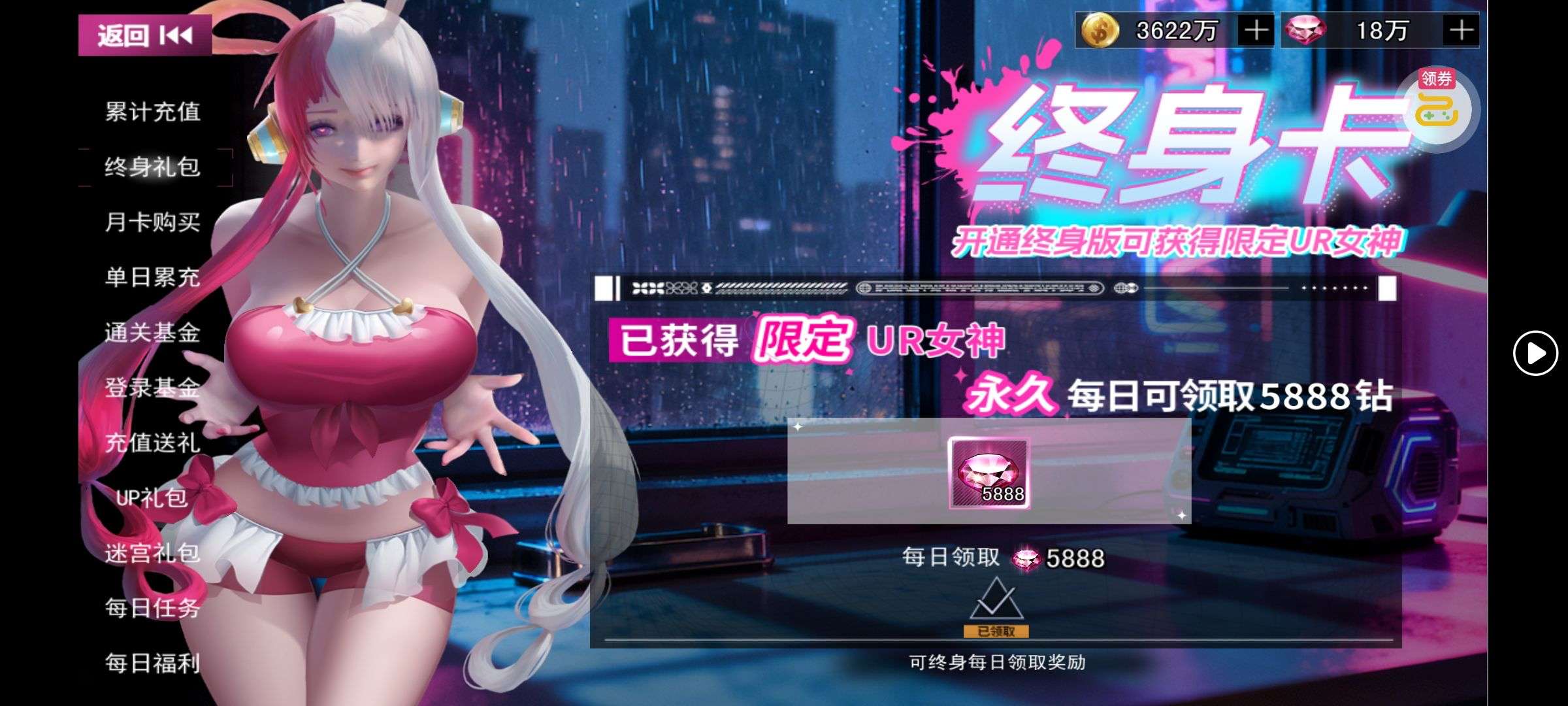 新区开荒战力号 3光暗UR 终身卡已开 背包里还有一个光暗UR缘装自选 后续自选慢慢玩即可