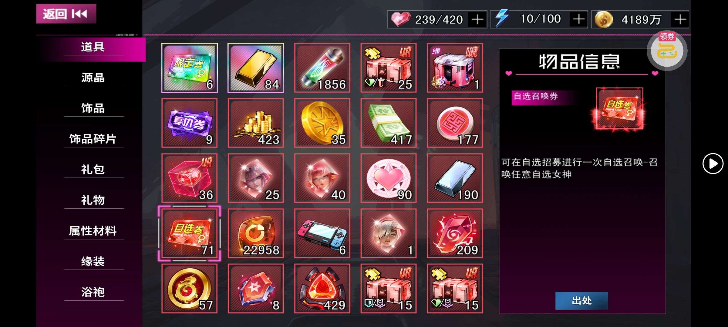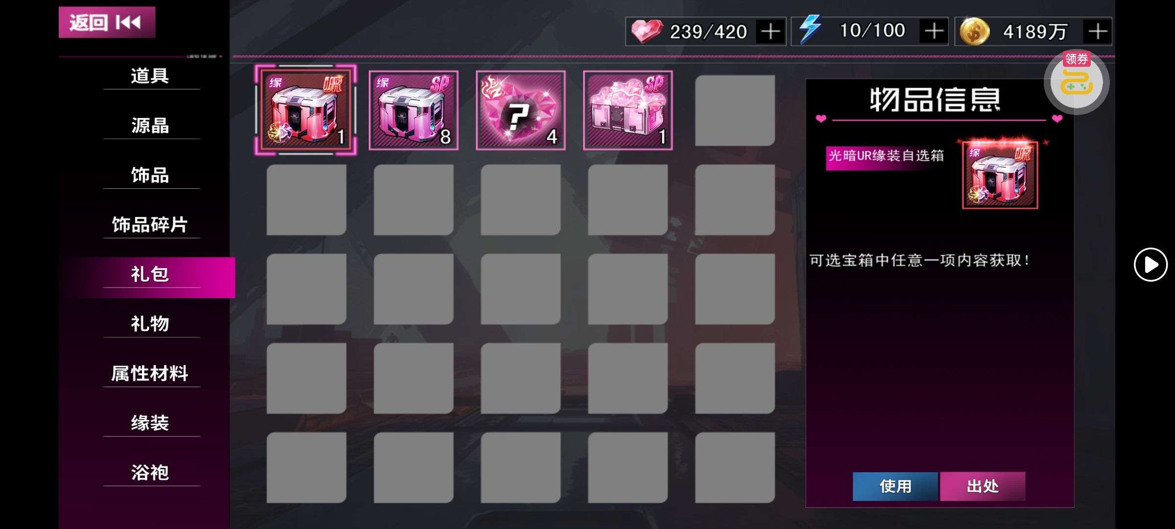新区开荒战力号 3光暗UR 背包里还有一个光暗缘装自选 永久卡已开