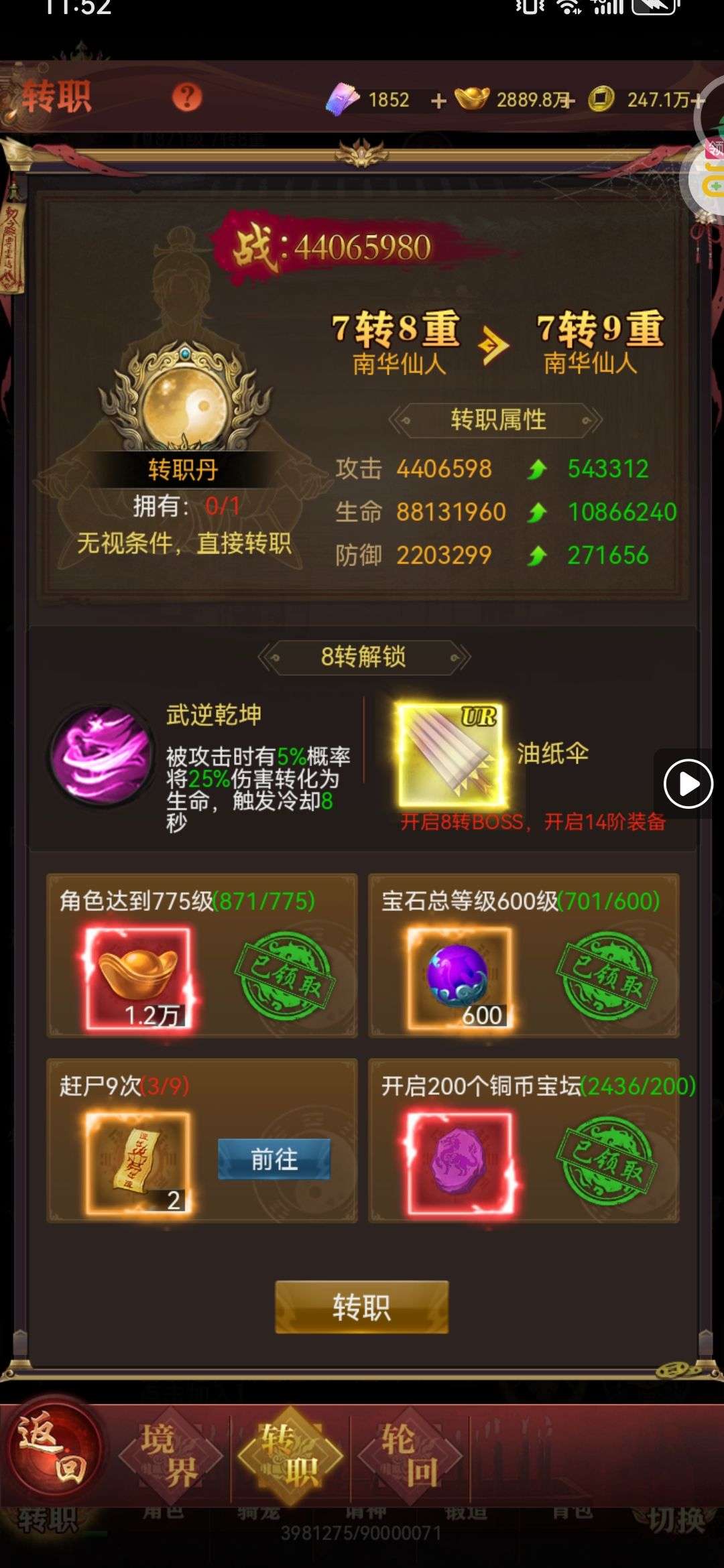 871级7转8重榜一,没时间玩了