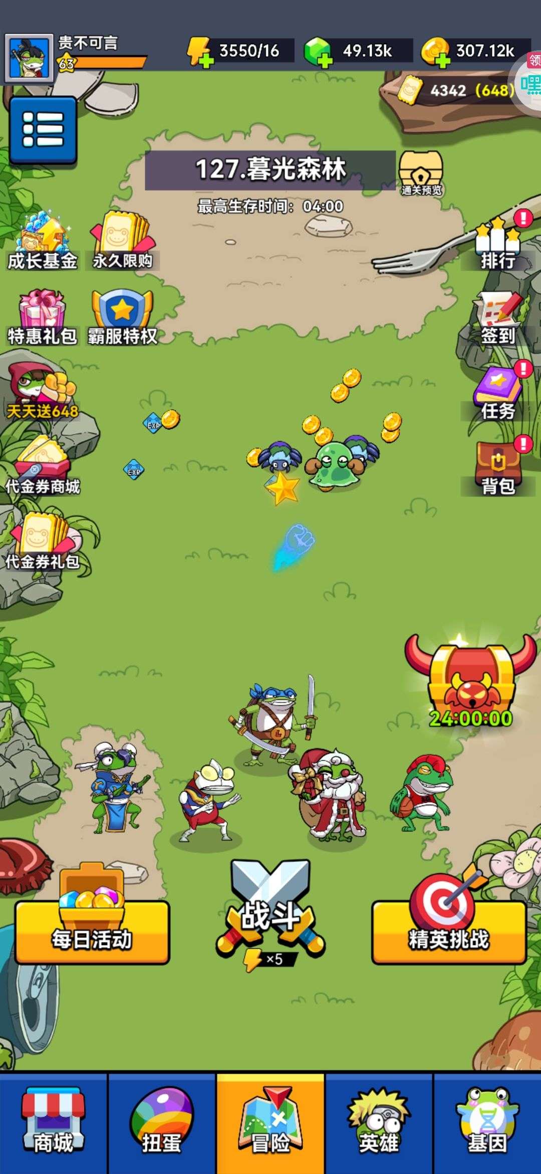 充了18块,全部神话一星,每天可以领648+996代金券,副本127