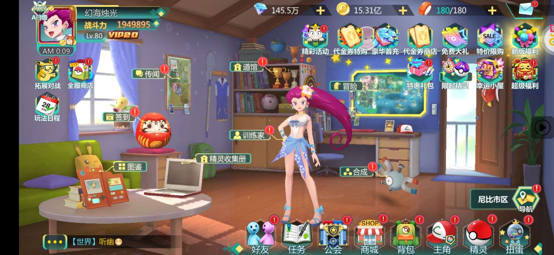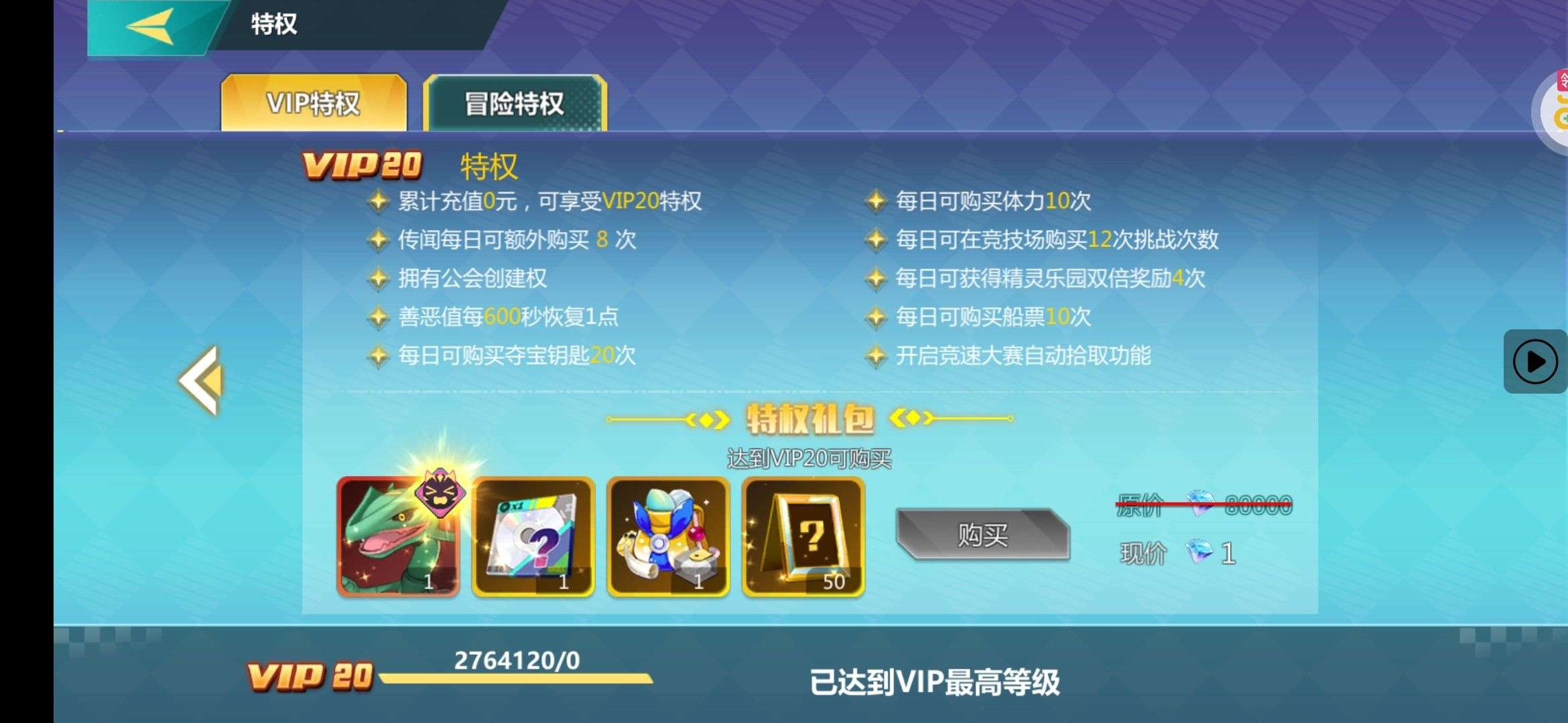 角色等级80级满级,特权全开,背包里资源众多,不用太肝