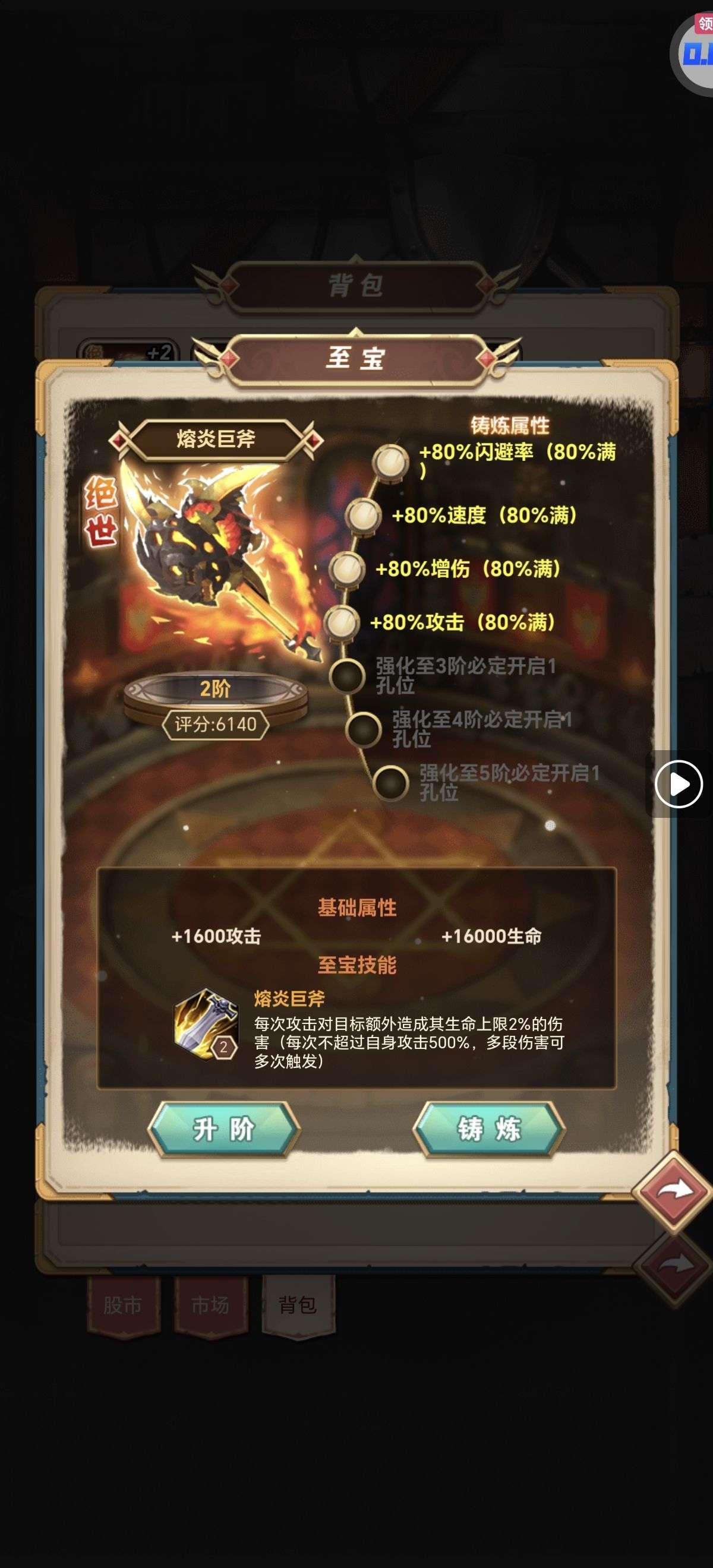 有2阶全80绝世斧头一把 可上股市