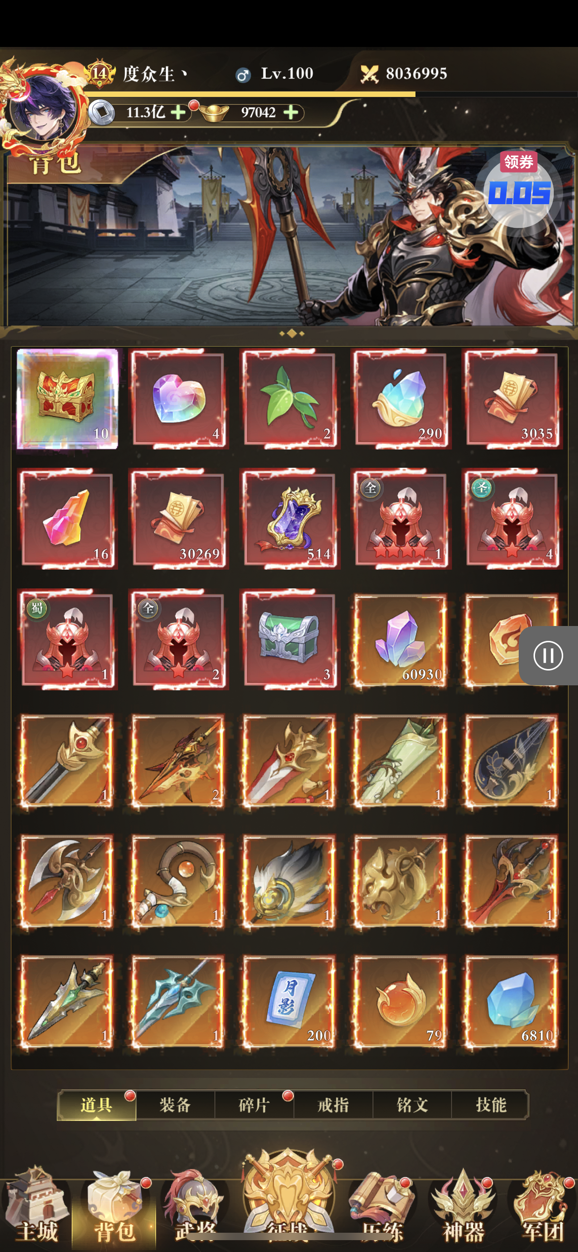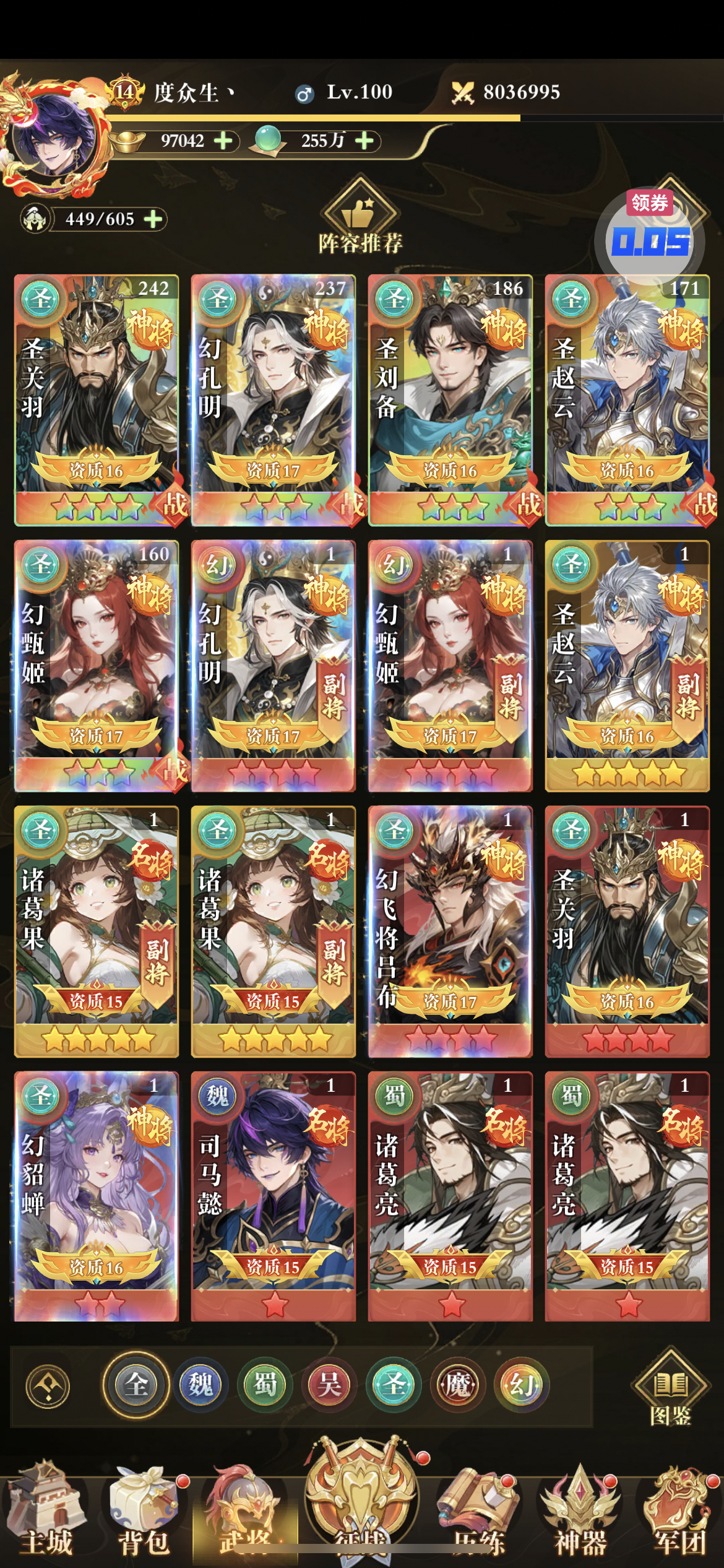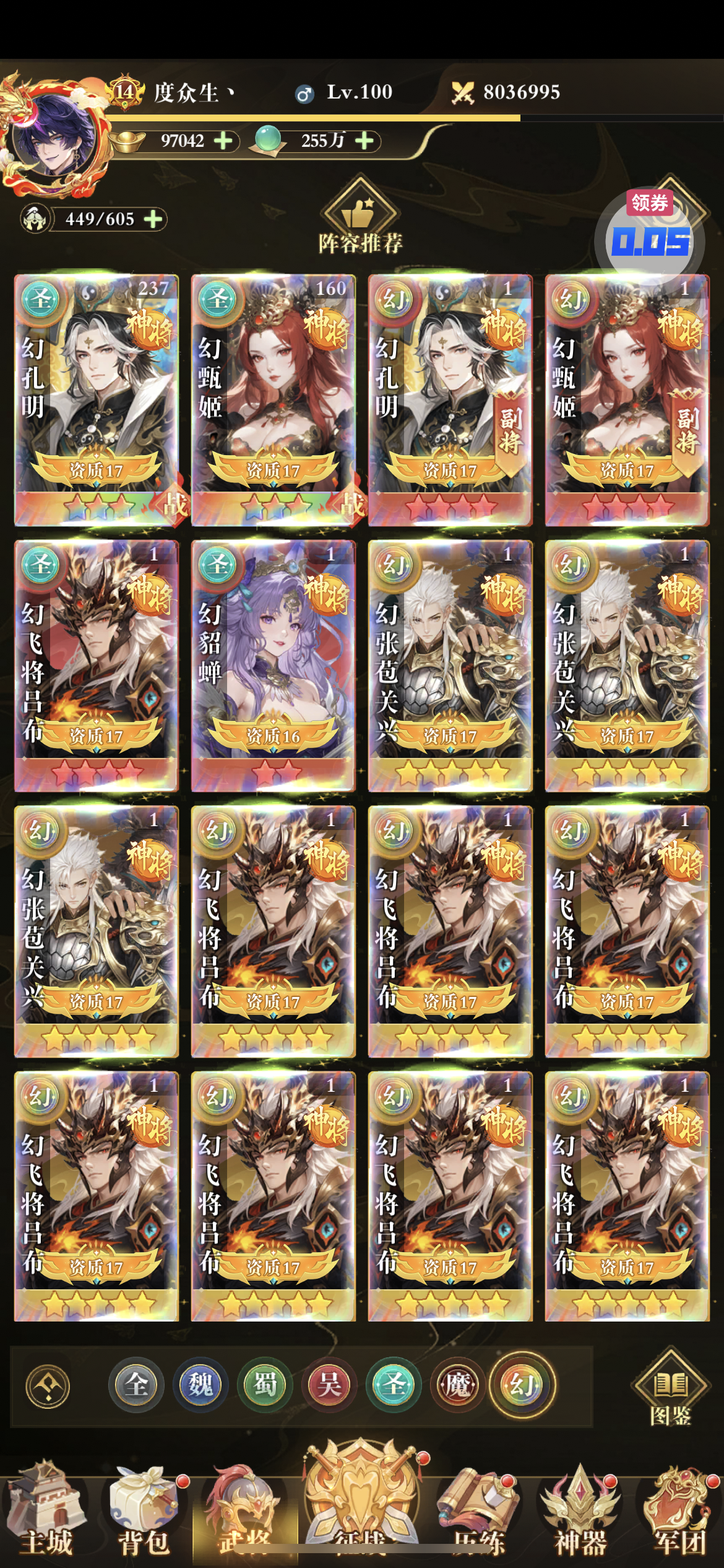 还有三万多代金券,幻武将成型,每天圣关羽碎片