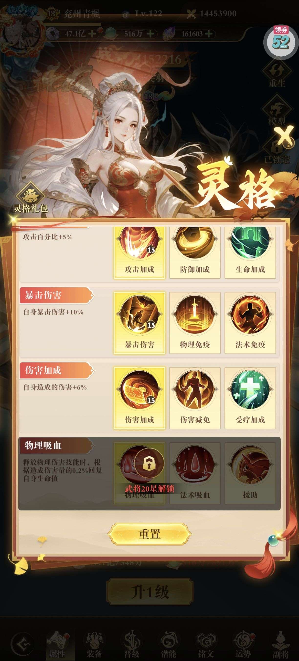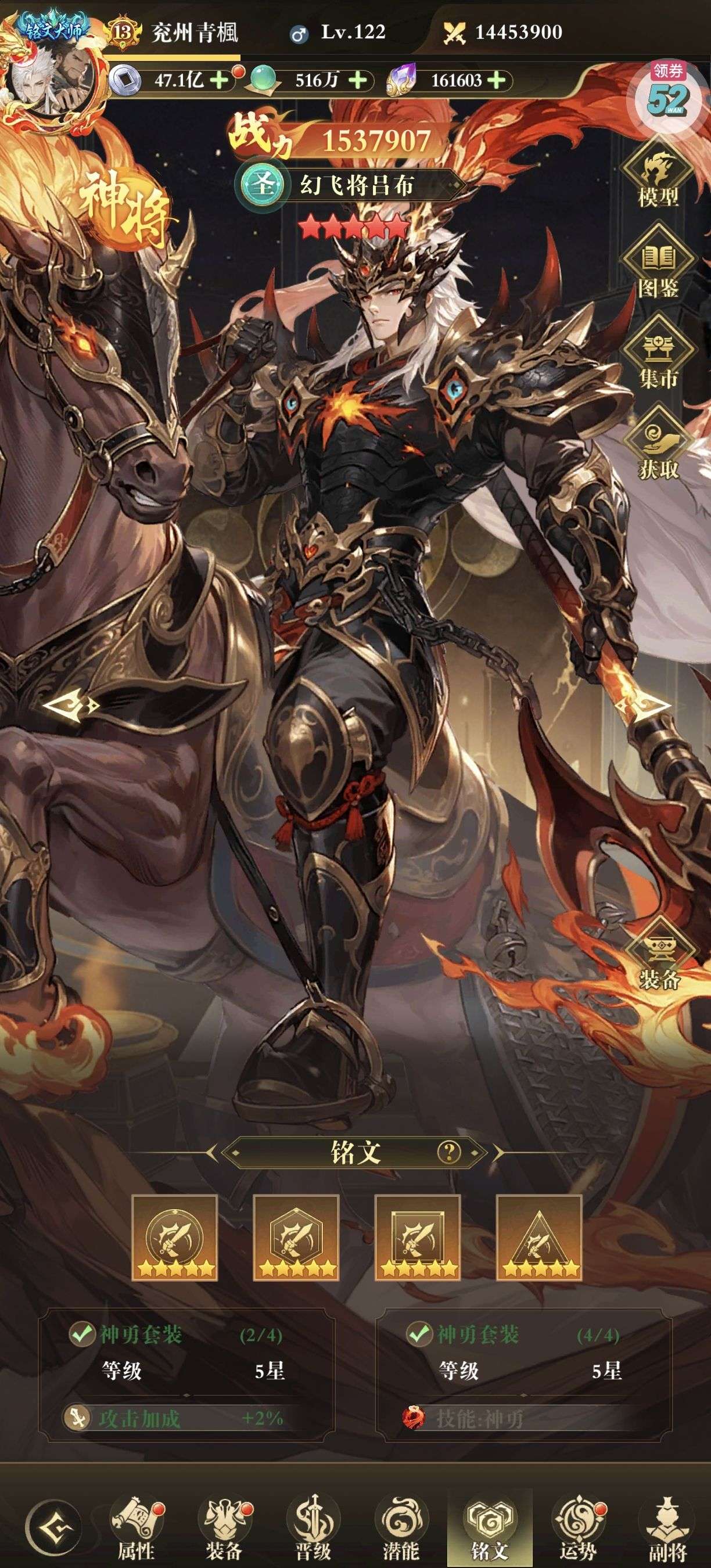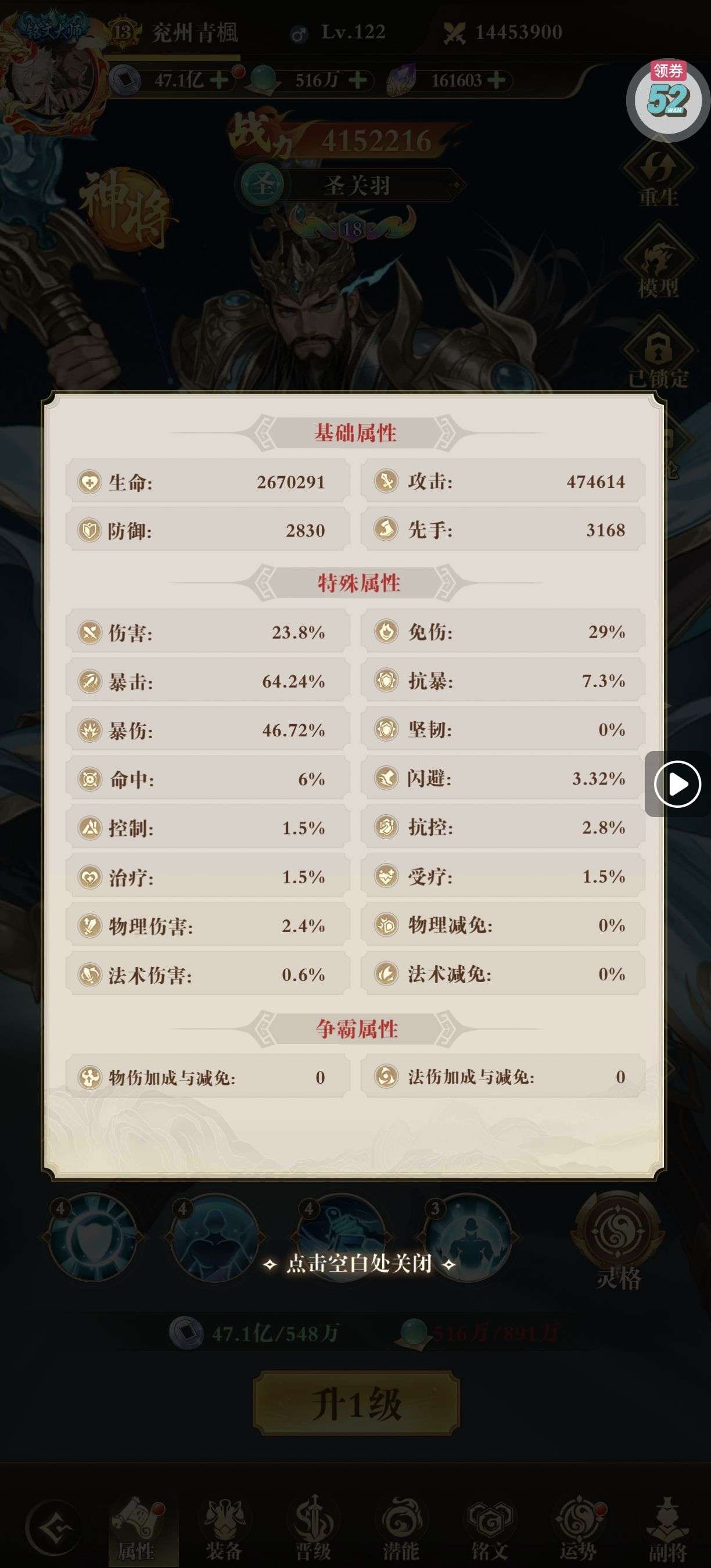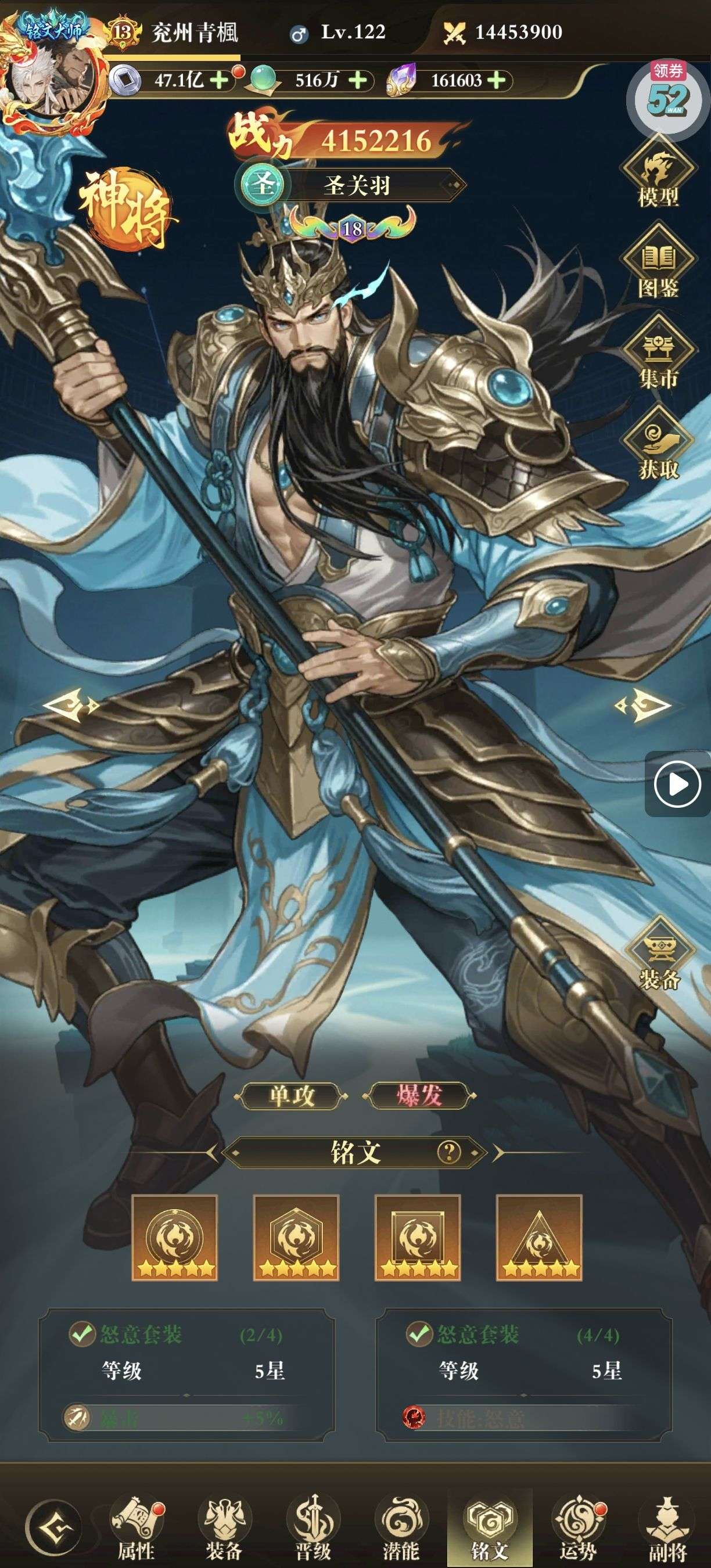 关羽灵格差最后一个全满,一套五星暴击铭文。两套五星攻击铭文。