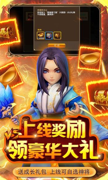 《英雄爱三国》主打新型回合制角色扮演特色,结合传统回合制经典玩法和创新的战斗模式,炫目的技能特效和特色将缘系统,发挥回合制丰富的策略性特点,使战斗充满悬念和乐趣。游戏以传统回合制为战斗核心,加入神将洗练,侍女坐骑,跨服国战等特色玩法,带领你探寻丰盛的三国文化大餐。